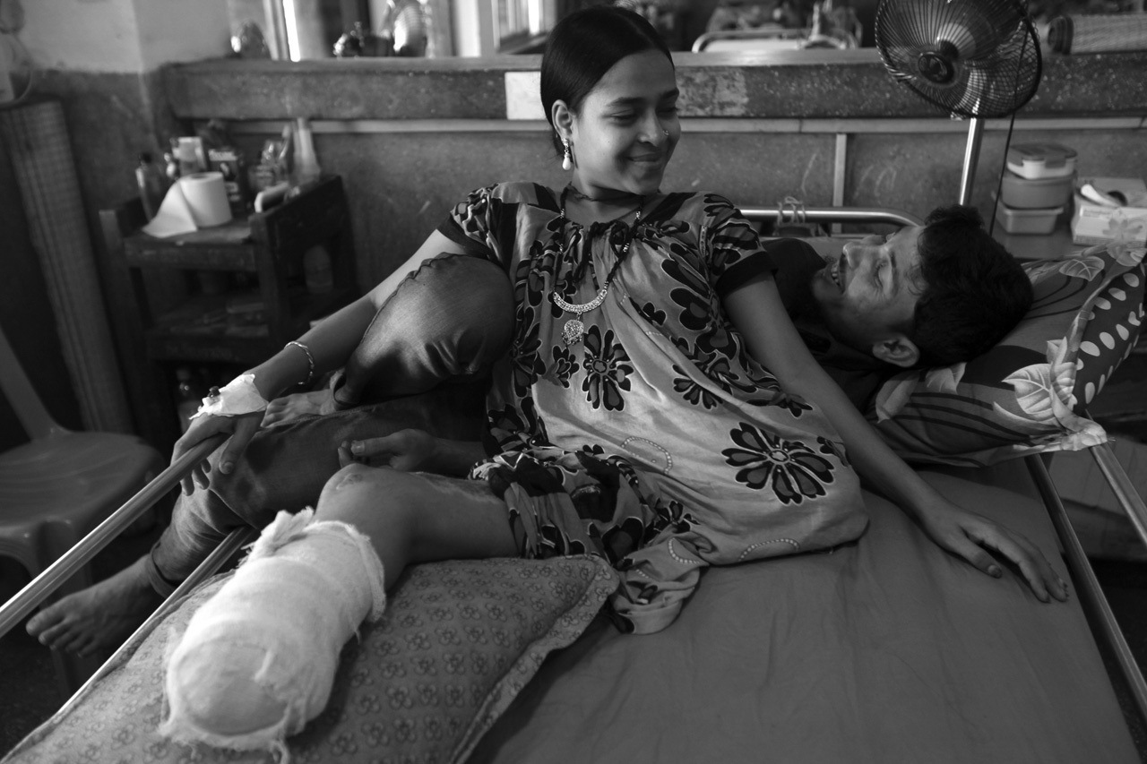 - রেবেকা এবং তার স্বামী মুস্তাফিজ। রেবেকা রানা প্লাজা দুর্ঘটনায় দুটি পা-ই হারিয়েছে, তাকে শল্য: চিকিৎসকের ছুরি-কাঁচির তলায় যেতে হয়েছে আটবার।