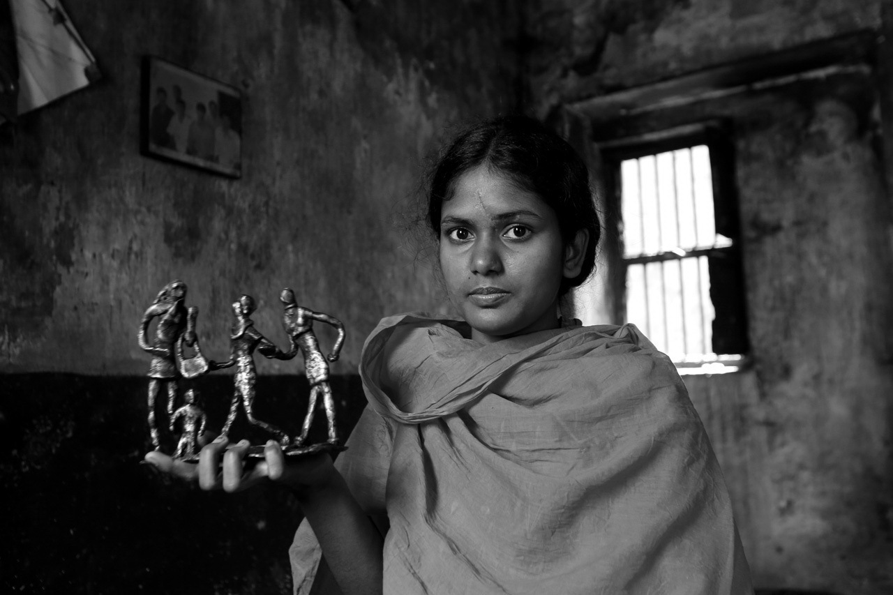 - নিজের তৈরিকৃত একটি ভাস্কর্য হাতে রানা প্লাজা দুর্ঘটনার শিকার গার্মেন্টস শ্রমিক শিল্পী।